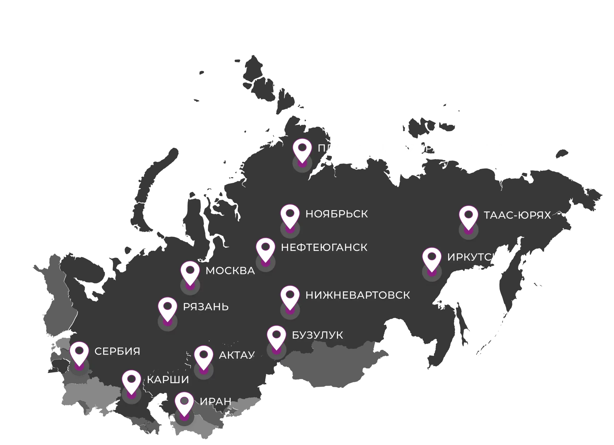 нефтедобывающих регионах Российской Федерации, в таких городах, как: