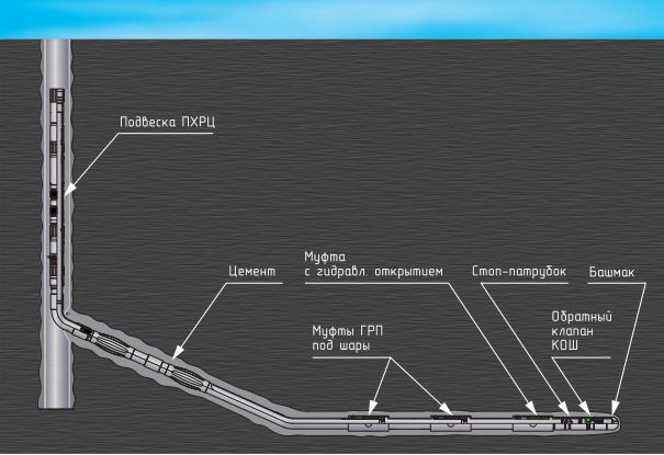 Для крепления скважины цементируемым хвостовиком, с компоновкой под МГРП используются следующие технические средства: