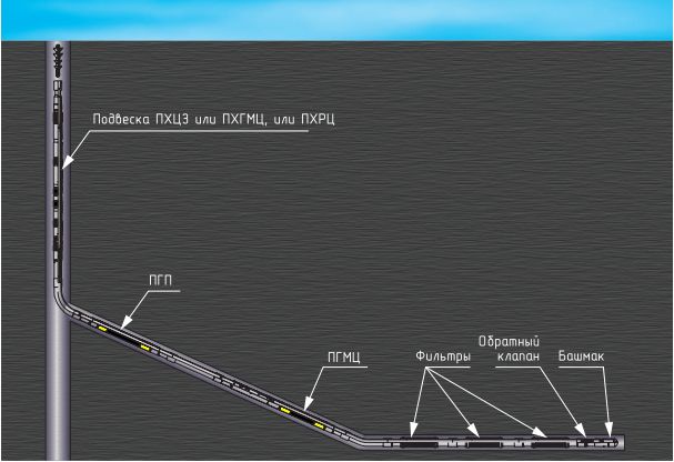 Для крепления скважины манжетно цементируемым хвостовиком, с дополнительным разобщением вышележащих пластов рукавными пакерами используется следующая компоновка: