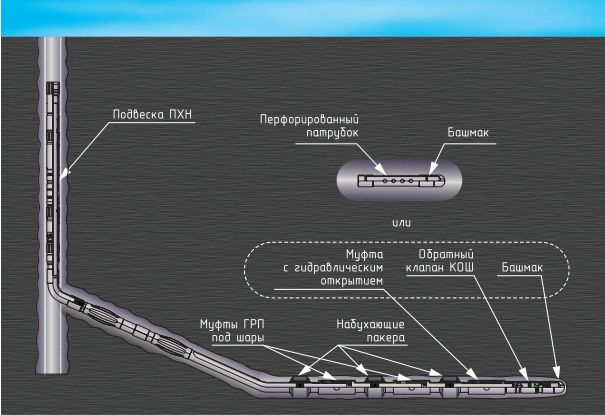 Для крепления скважины нецементируемым хвостовиком, с компоновкой для проведения МГРП и разобщением интервалов набухающими пакерами используются следующие технические средства: