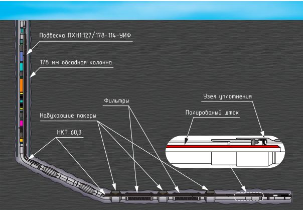 После сборки хвостовика вовнутрь спускается колонна НКТ с полированным штоком на конце, до посадки последнего в узел уплотнения УИФ.