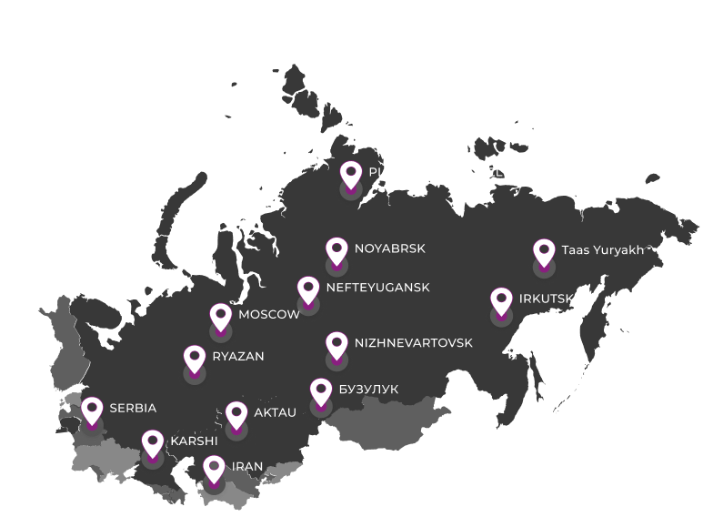 CNC, its experimental base, as well as representative offices in all major oil-producing regions of the Russian Federation, in cities such as: